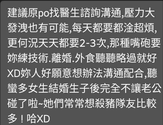 推 besta326 : 我身邊或客人大部分都是說他們夫妻或老公都是慾望下 07/19 17:07