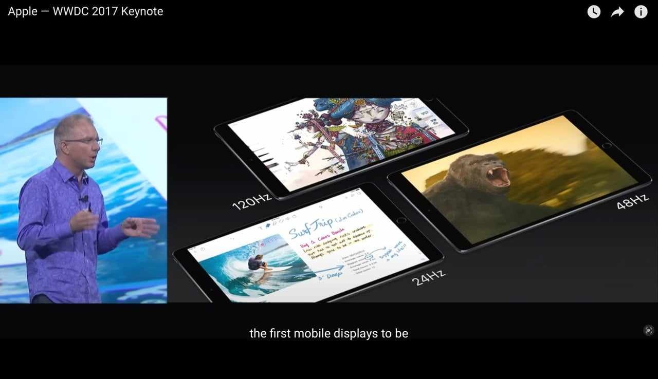 → gary8442: 2017 WWDC iPad Pro 就有24~120Hz ProMotion 了 09/11 13:42