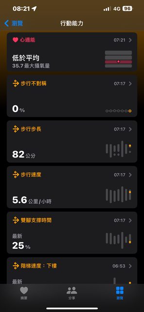 其中最大攝氧量,步行穩定度之類平常就要注意