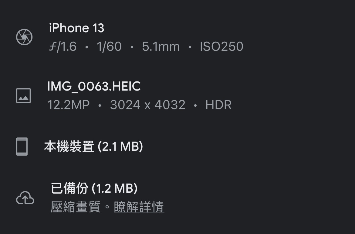 → seheel1114: 有iCloud 最佳化,那Google相簿會備份到縮圖;如果是 09/12 12:50