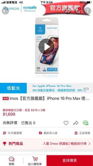 噓 x030062536: 16pro max 一片32元我買四片 09/20 19:14