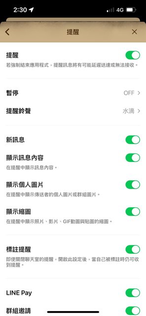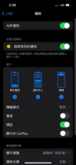 問題描述:大約在上週9月底的時候發現line都沒跳通知, 一定要打開line 訊息才會全部