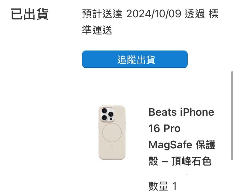 → casanovako: 9/13跟16p一起下單 手機9/20到 beats殼今天出貨明天到 10/08 17:53