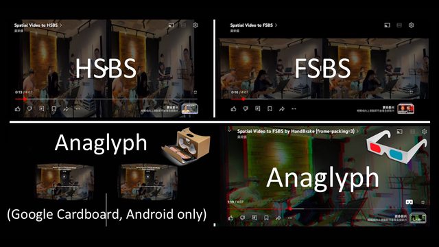圖片 2:HSBS, FSBS & Anaglyph 在手機版 YouTube app 的畫面比較
