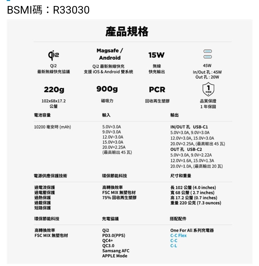 → gary8442: 10000mAh 45W雙C+Qi2 / 5100mAh單C 20W + Qi2 兩種可選 11/02 07:59