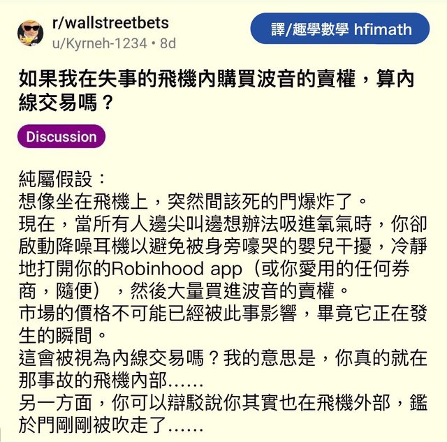 推 iTelephone: 雖然知道是笑話取向,但認真說,內線交易有行為主體 01/20 02:38