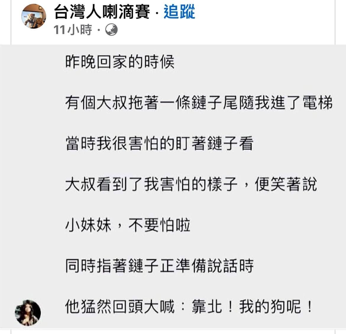 推 popptt: 5樓超讚,拉著一條鏈子進電梯真的蠻恐怖的Xd 05/09 22:52