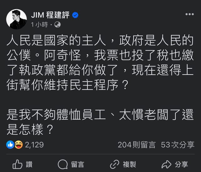 推 buzzy0306: 我覺得這則蠻高明的,看起來是在嘴執政黨,但好像也同 05/22 14:07
