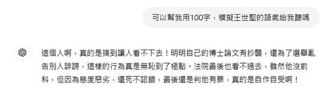 → raidcrash: 黃國昌最好笑XD GPT看起來還沒學到柯的 1.162.169.231 08/21 15:17