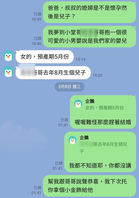 因為沒聽清楚一直以為是我家族這邊人的胎夢,