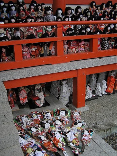 現實中靈異現象 供養人偶相當有名的神社,裡頭供養了兩萬尊以上的人偶 神社里排列著各種日本人偶和法國人偶,其中也有頭髮會長的菊人形 就魄力與威壓感來說可以說是絕景。 說是靈異地點更像是神聖的場所 沒事不要過去 資料參考: