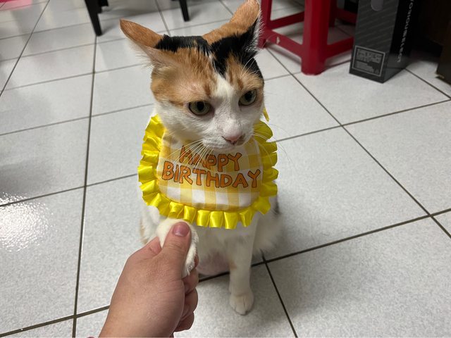 推 ha878787: 肥三花可愛,戴生日圍兜看起來很不爽 01/26 11:49