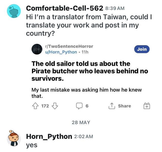 推 wafiea708: 1寫得不錯 3看了有點毛毛的 5老水手可能是海盜05/24 13:23