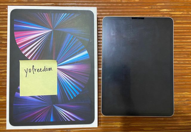 iPad 有貼類紙膜,外觀有小小的痕跡(如圖2),附贈11吋保護套1個