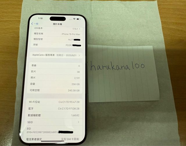 標題[賣/雙北/面交] iphone 15 pro max 256g 鈦原色
