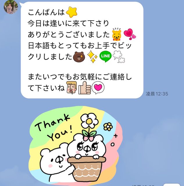 離開前她也手寫一張卡片並且加了Line,走回車站的路上就收到她感謝的訊息