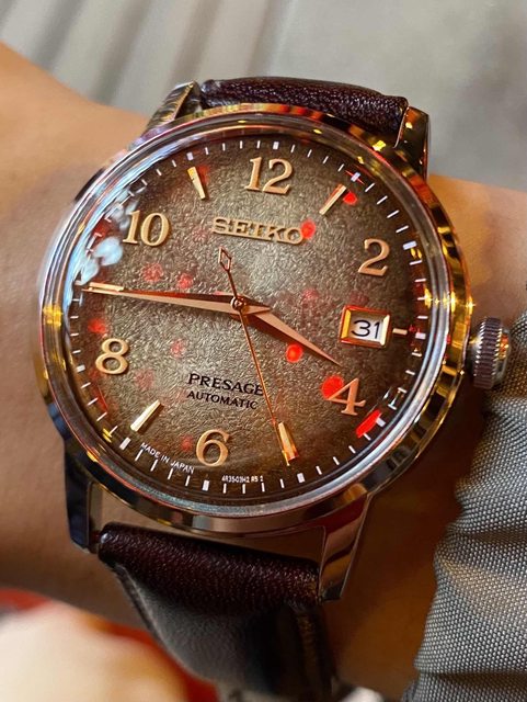 拉)與夜光大劍針,搭配18k玫瑰金外圈與半金鋼帶