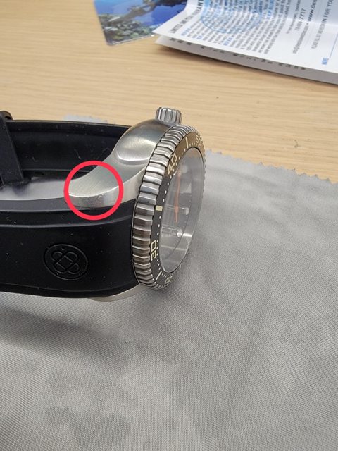刮痕請參考圖片紅框處,因為是拉絲錶殼,實際看起來比照片不明顯,